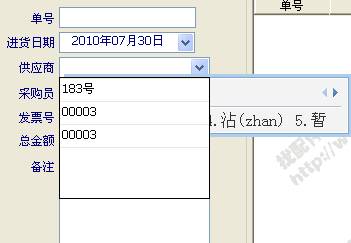 6、 配件太多記不住配件編號怎么辦?輸入編號、配件名稱等等會很麻煩,那么多編號肯定是記不住的,先填好供應(yīng)商、采購員、發(fā)票號等等,之后就是開新單會彈出: