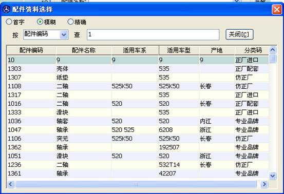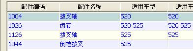 ,可以按配件編碼、配件名稱、適用車名、適用車型、產(chǎn)地、分類碼等等來查詢,選擇一個您熟練的,新來的貨物里這些資料總會有其一的,有就能找到它歸屬地。直接輸入后不需要再按什么鍵,如果有就會直接顯示出來,沒有就不會顯示出來,例如: