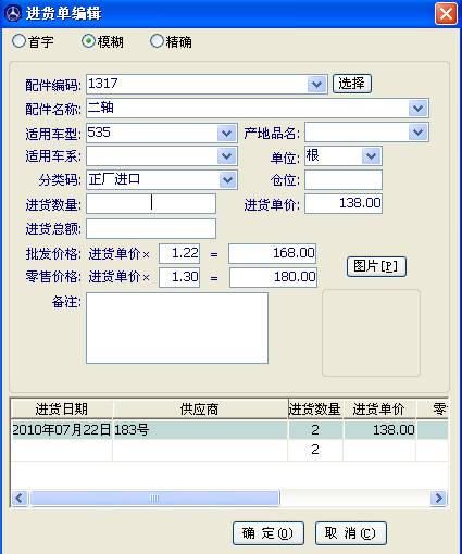 同樣查詢進(jìn)貨歷史的方法在進(jìn)貨入庫時查詢,任意輸入好供應(yīng)商等等,開一張新單,輸入您要查詢的配件名稱或者配件編碼號,
