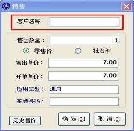 客戶名稱框里輸入內(nèi)容,如果此客戶購(gòu)買過(guò)此配件,那么在窗口的右邊將調(diào)出此客戶的購(gòu)買記錄及價(jià)格,如下圖