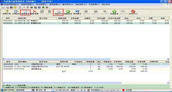 窗口分為上下兩部分,上部分顯示的是開出的單子及客戶一些信息,下部分對(duì)應(yīng)的是此單子里包含的配件信息。