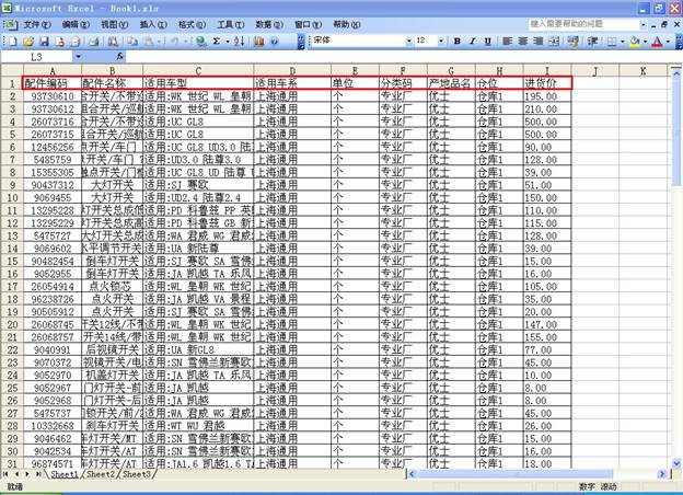 在左側(cè)輸入供應(yīng)商后,點(diǎn)擊“進(jìn)貨”按鈕,打開配件資料錄入窗口如下圖